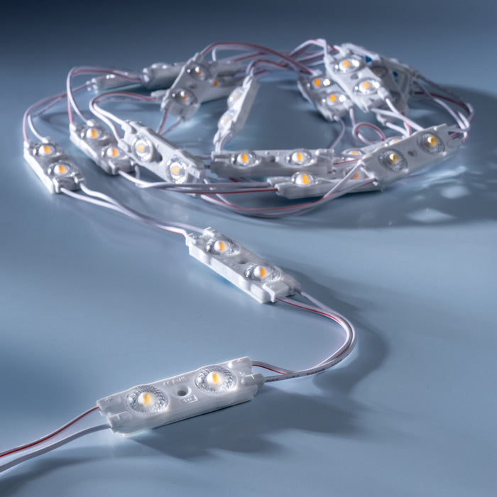 With the waterproof LED modules from leds.de, you have a brilliant lighting tool that is excellent for both outdoor and indoor applications. Each module contains two warm white LEDs that produce a beautifully warm and pleasant light. With our experience and quality, we ensure your customer satisfaction and support you in the successful implementation of your lighting projects